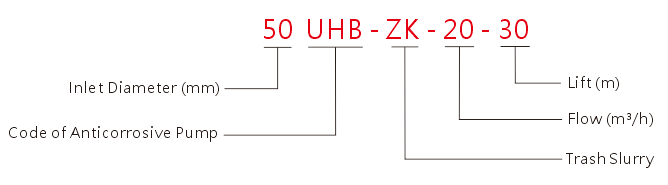 Characteristics of the pump: applicable for different working conditions, for instance, conveying acid or alkali clear liquid or slurry; caustic ore pulp in smelting industry; all diluted acids in sulphuric acid industry; waste waters in environmental protection industry. The pump is resistant to corrosion and wear and has a wide range of application. Applicable media: sulphuric acid below 80%, nitric acid below 50%, hydrochloric acid of various concentrations, clear liquid or slurry of liquid caustic soda. Working temperature -20°C~80°C (for special demand, up to 105°C. While using modified materials). The pump impeller is half-open with K-type dynamic steel.