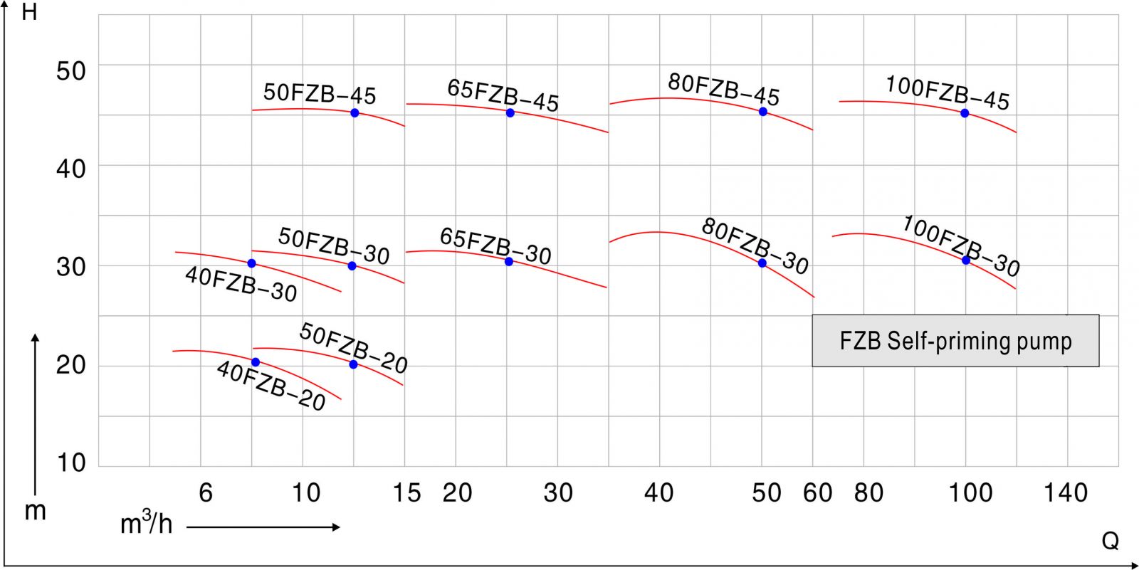 FZB self-priming fluoro-plastic centrifugal pump, is a new corrosion resistant self-priming pump employing fluoro-plastic made shaft seal for all parts contacting medium and external bellows mechanical sea...FZB self-priming fluoro-plastic centrifugal pump, is a new corrosion resistant self-priming pump employing fluoro-plastic made shaft seal for all parts contacting medium and external bellows mechanical seal, easily operable and adjustable. The pump has a self-priming height of 1-4m (medium is fresh water) and requires no reverse flow, pump priming, bottom valve which other common centrifugal pump require. It is widely applied in acid washing, acid production, alkali production, chemical, pesticide, paper making, electronics etc. Applicable temperature: -20°C~80°C.