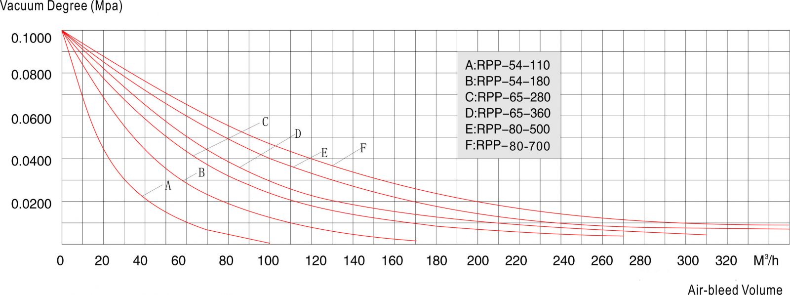 ④ The readings of the degree of vacuum in the table refer to the pressure below standard atmospheric pressure. (1 mmHg = 1 Torr = 133.3 Pa, 0.1 Mpa = 750 mmHg)
